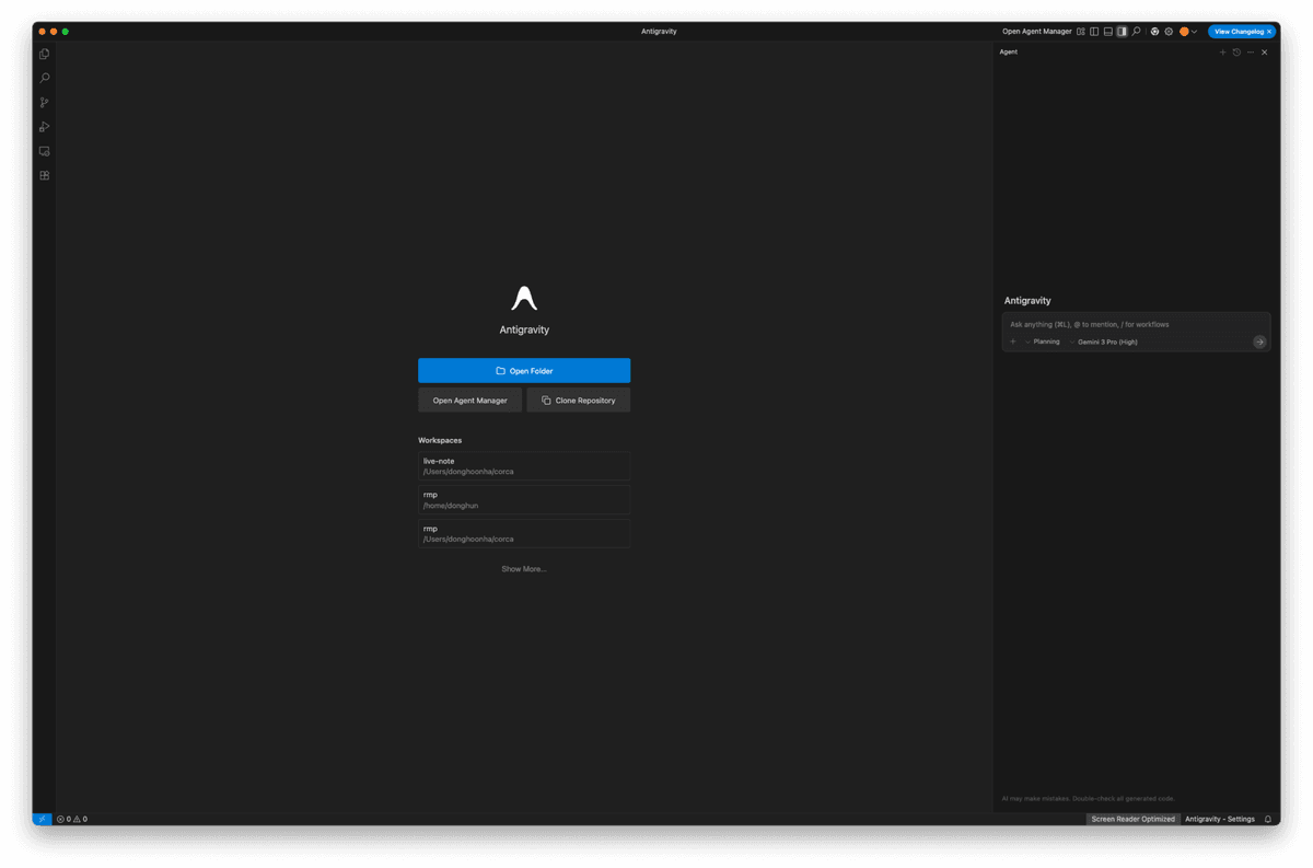 Cursor을 더 이상 쓰지 않아도 되는 이유입니다. Google에서 지난 주 공개한 IDE로 Cursor의 모든 기능을 제공하고, 최신 모델인 Gemini 3 Pro를 무료로 제공합니다. 아직 초기라 안정성이 떨어지는 모습을 보이긴 하나, 이러한 기능, 모델을 무료로 사용한다는 점만으로도 커서를 충분히 대체할 수 있는 상황으로 보입니다.(다만, 사용량이 적은 문제가 있습니다.)